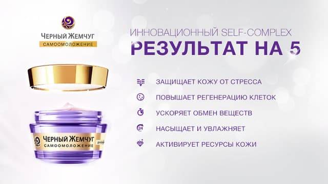 - Био-программа. В составе биологические вещества, позволяющие привести в норму основные функции клеток эпидермиса. Среди наиболее распространенных средств – ночной крем «Чёрный жемчуг», активно борющийся со старением.